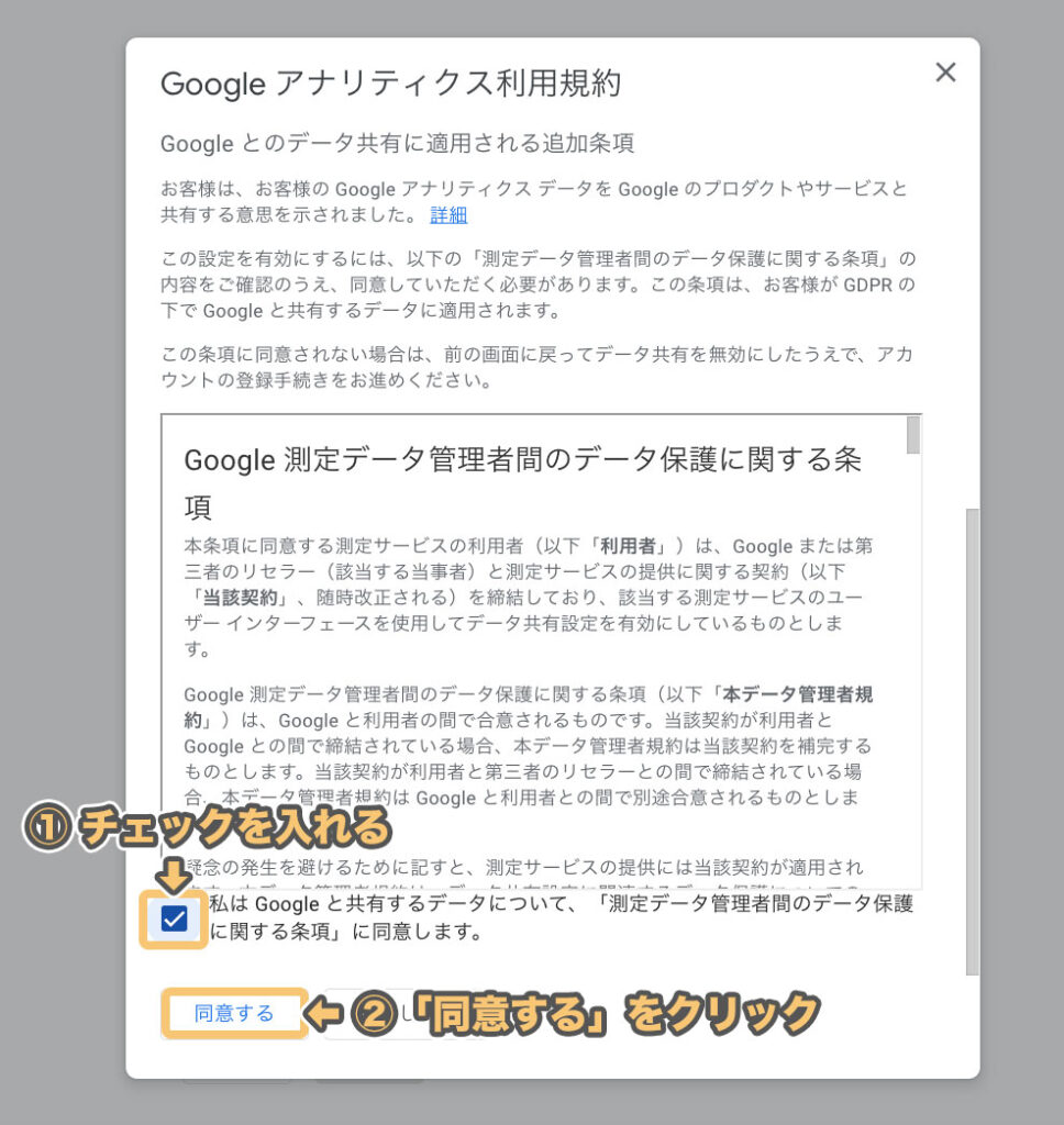 「Googleアナリティクス利用規約」が表示されるので