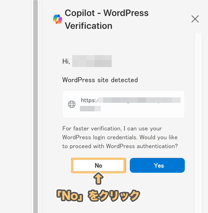 その場合は「No」をクリックして、次に進みましょう