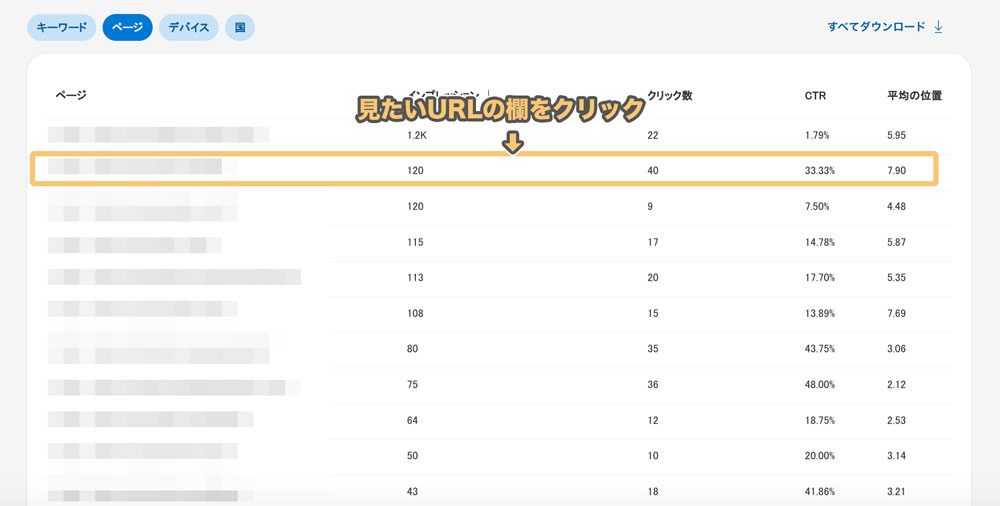 - ページごとの検索上位のキーワードを確認する