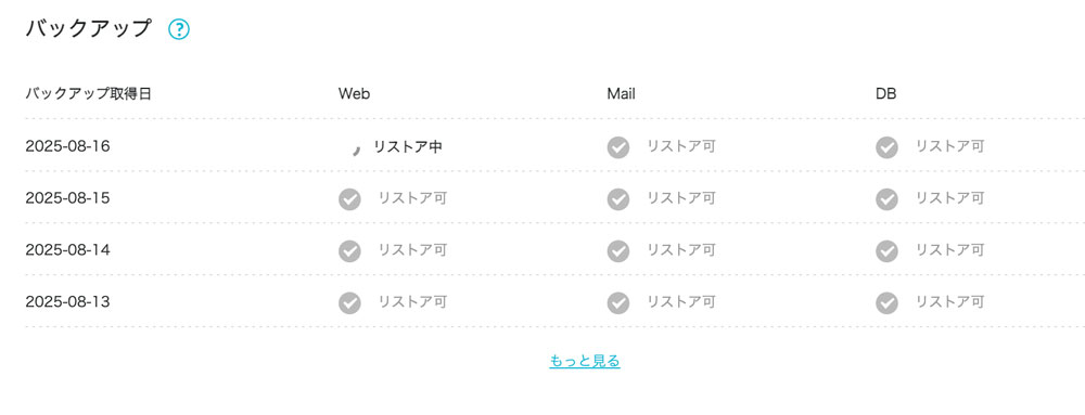 したがって、たくさんサイトを管理している方はリストアの時間に長時間かかる場合があります