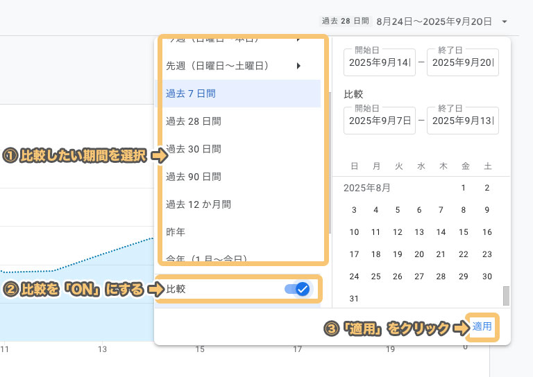そんな時に先週と先々週のデータの比較など、特定期間ごとの分析比較が可能です