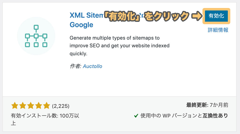 これで「XML Sitemap Generator for Google」のインストール、有効化が完了です